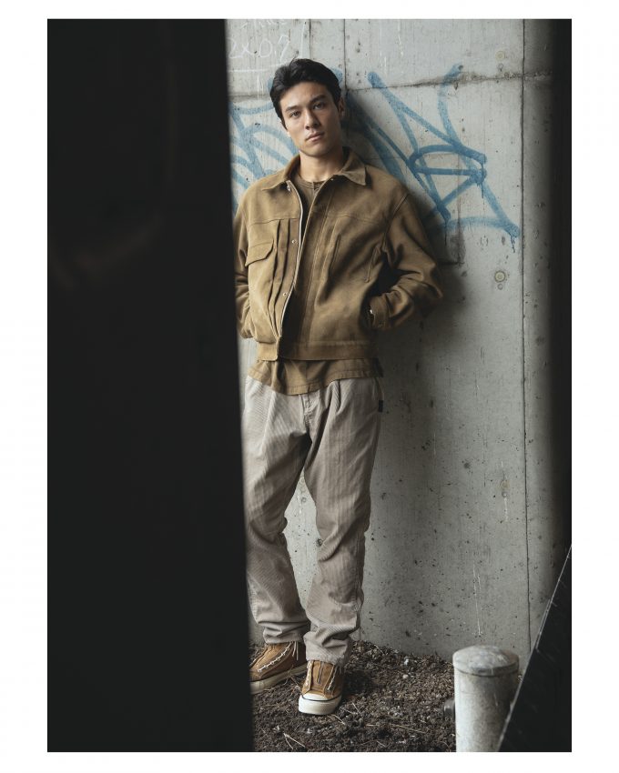 長年穿き込んだような表情をもつこの素材は、秋冬らしい温かみとnonnativeらしいムードを演出します。