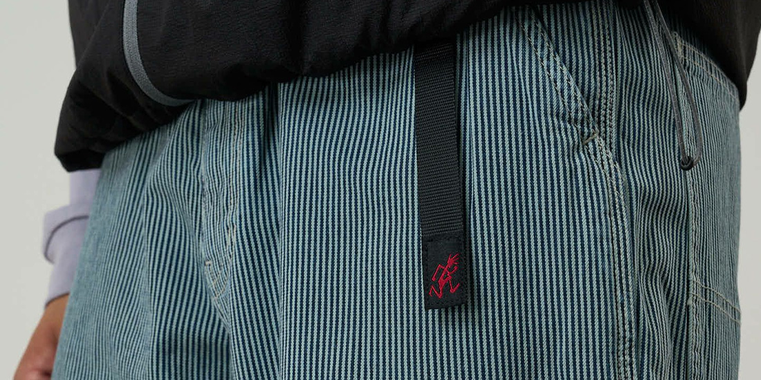 クラシックなワークパンツをベースに、現代のライフスタイルに合わせて再構築した一本。ウエストはゴム仕様にウェビングベルトを組み合わせ、快適なフィット感とスムーズな着脱を実現しています。