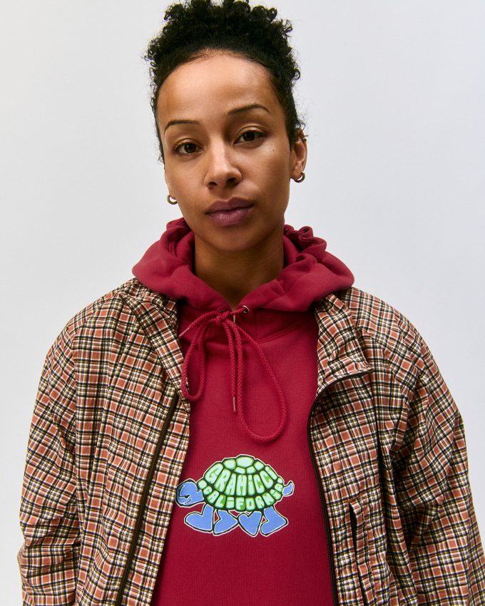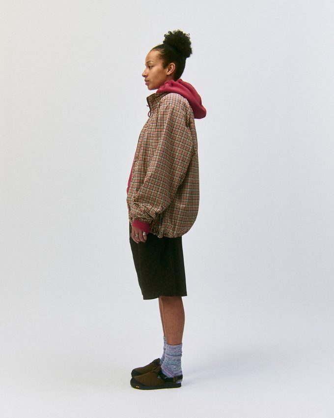 オリジナルのチェック柄を落とし込んだ、高密度ナイロンの軽量シェル。